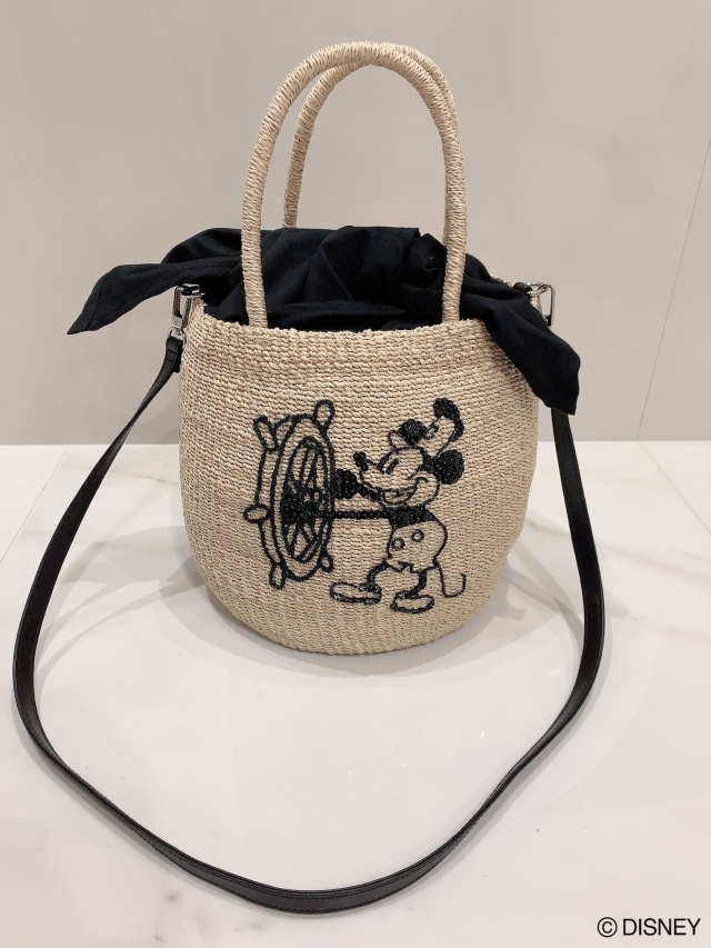 selva secreta/蒸気船ウィリーのミッキーマウスが刺繍されたカゴバッグになります。