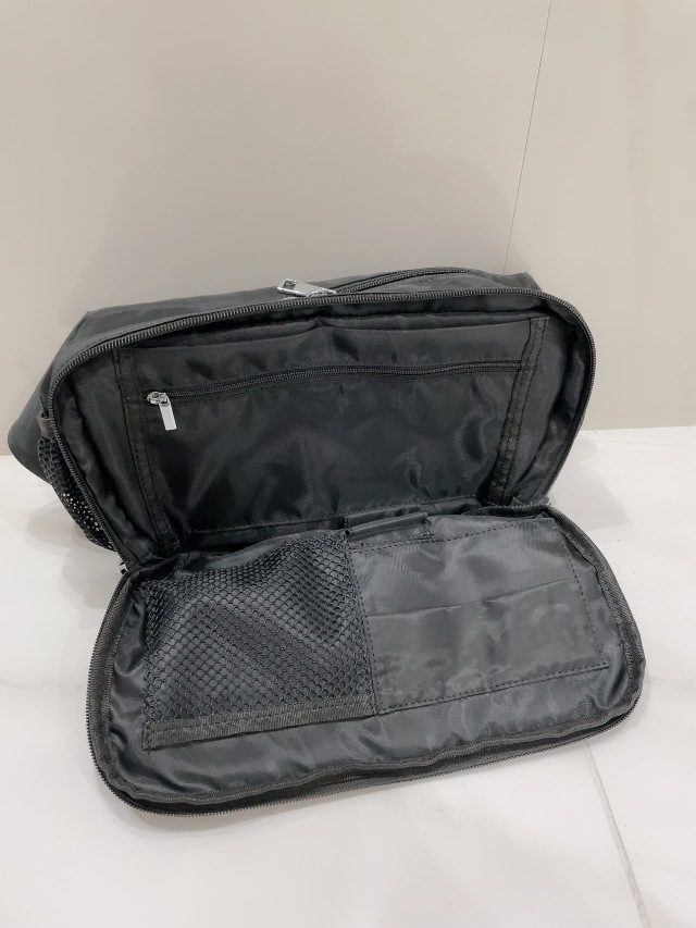 ウエストポーチの入れ口が2層にセパレートしているので綺麗に収納できるようにデザインされております。
