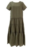 カジュアルに動きやすいデザインの麻素材ワンピースとなっております。