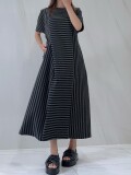 【selva secreta】Stripe×Border Pleats Tshirt one-piece(dark-gray)