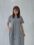 しま模様の生地をボーダー使いとストライプ使いをして切り替えたデザイン。