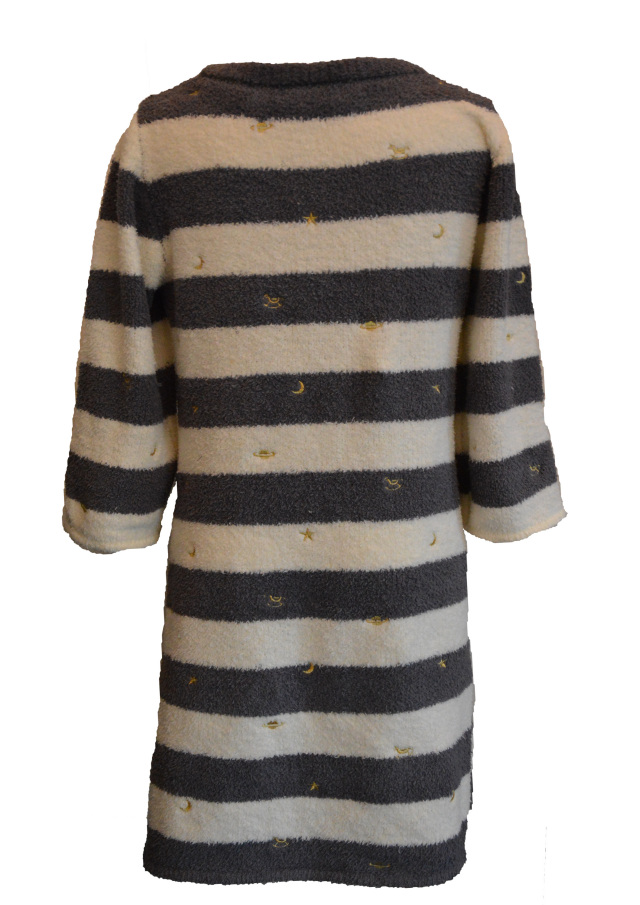 TOPLadie's 【selva secreta】DREAMING ROOMWEAR (gray) 価格: ¥8,900 (税込) 販売期間: 数量: 枚 SIZE在庫購入FREE○ SIZE在庫購入FREE○ 返品についての詳細はこちら モコモコとしたボーダー柄のワンピースタイプのルームウエアになります。 ルームウエアにはDREAMINGをテーマに星・月・惑星・木馬のモチーフがゴールドの糸で刺繍されております。 袖は8分丈のデザインになっております。 Country of origin ・中国製 Size ・FREE