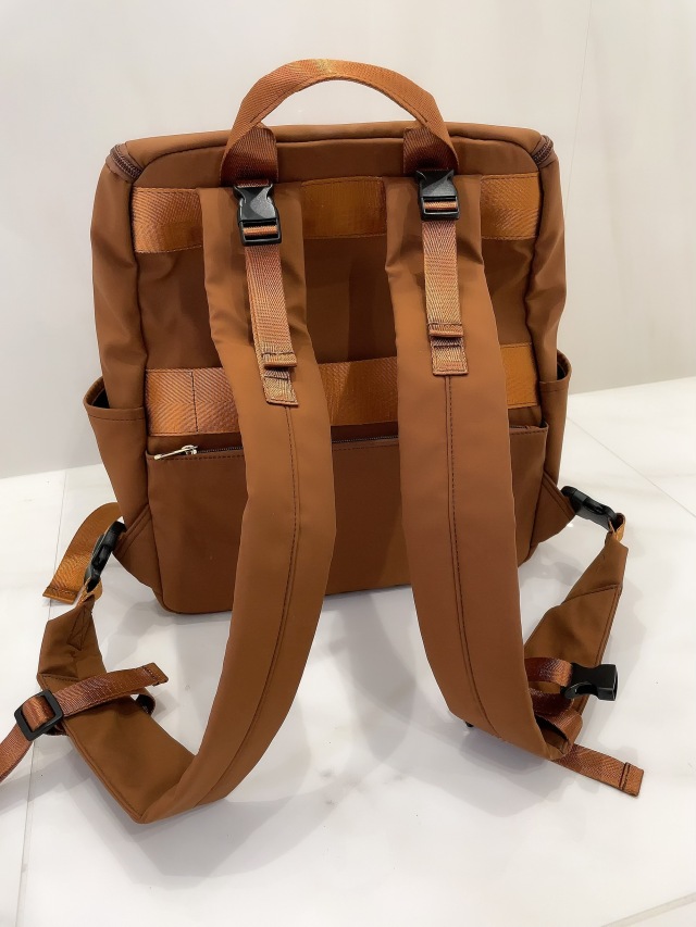 リュックは自立する形になっているので置きやすく 肩紐はずり落ち防止のサイズ調整可能な紐と 肩紐にはベビーカーに取り付け用のバックル、旅行用キャリーケースに付けられる用の紐、 抱っこ紐をした状態でもリュックの着脱をしやすいように肩紐下部肩紐がバックル付きで取り外し可能な便利なデザインになっております。