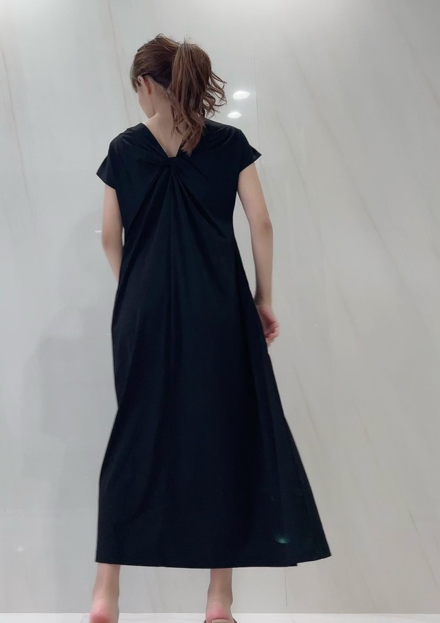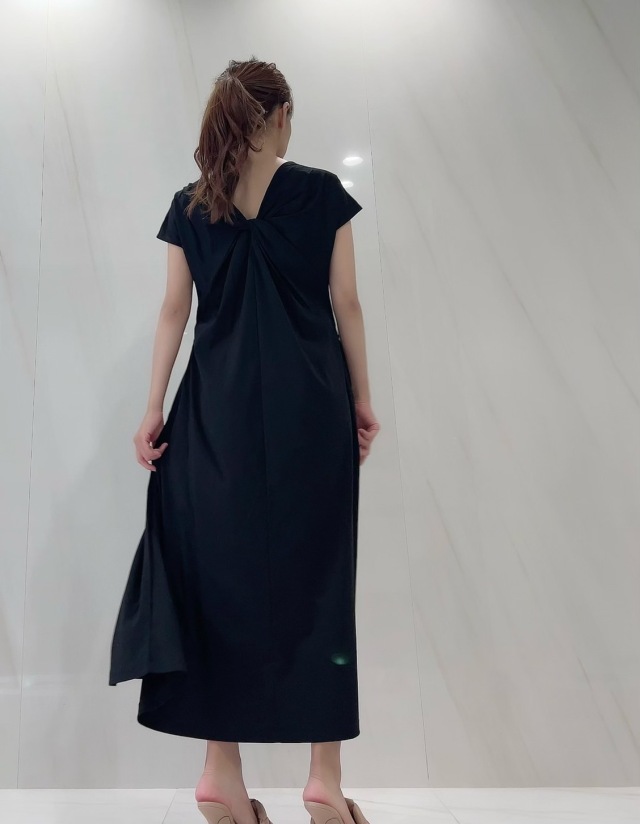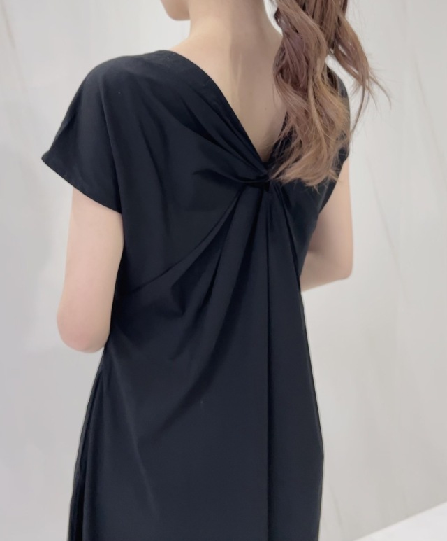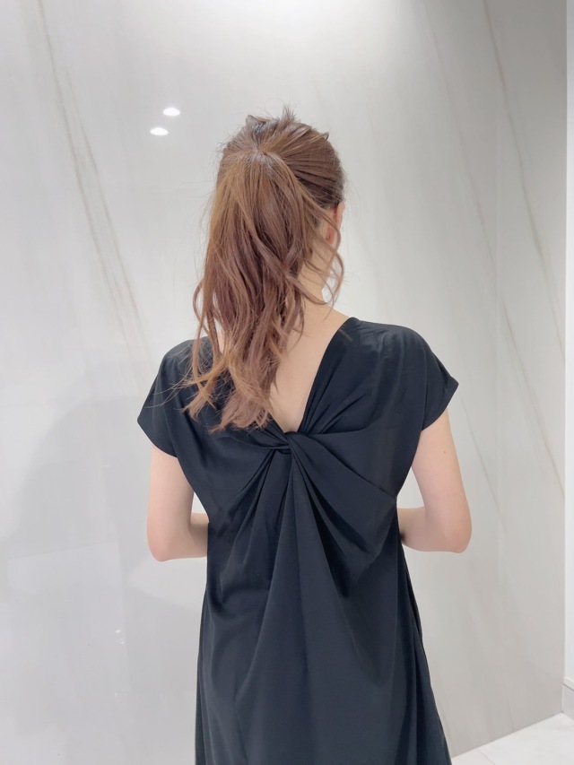 背中のねじれシルエットが印象的で、背中のあき具合は下着が見えにくいラインを微調整し仕上げています。