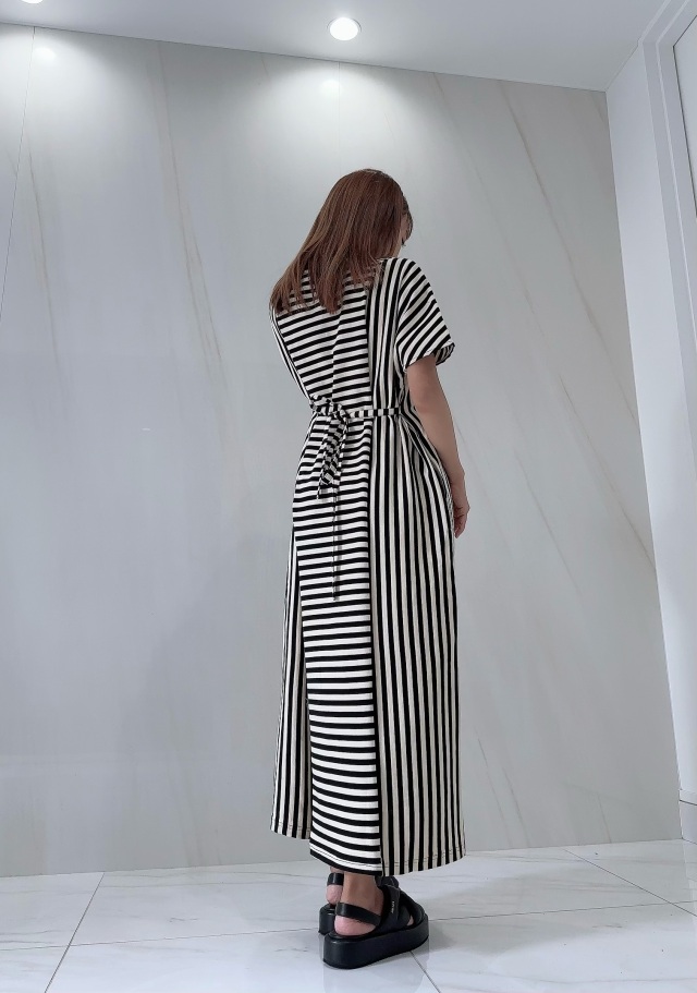 【selva secreta】Stripe×Border Pleats Tshirt one-piece(beige)